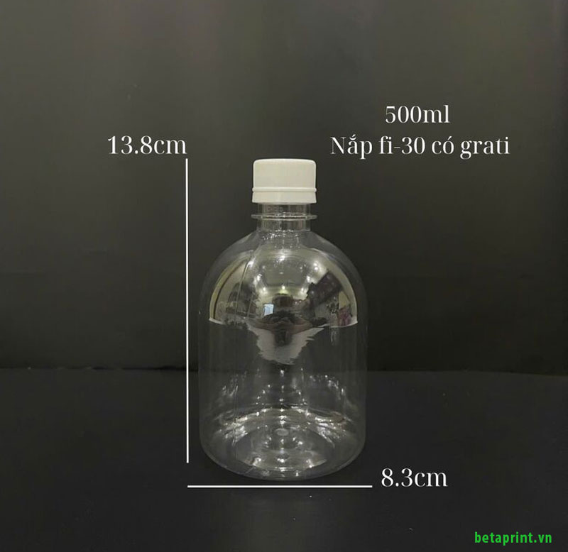 Một chiếc chai nhựa 500ml chỉn chu, cứng cáp không chỉ bảo vệ đồ uống mà còn là cách rẻ nhất để khách hàng nhớ đến và quay lại với bạn. Dù bạn mới khởi nghiệp hay đã có chuỗi cửa hàng, Beta Print luôn sẵn sàng đồng hành với những mẫu chai đẹp nhất, giá tốt nhất và chất lượng in ấn sắc nét nhất. Đừng để bao bì sơ sài làm giảm giá trị ly nước tâm huyết của bạn. Hãy để Beta Print giúp bạn thay áo cho sản phẩm ngay hôm nay.